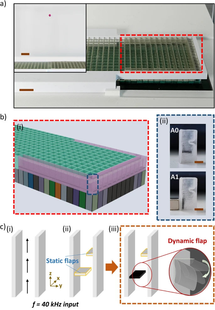 The scientists combined static and dynamic meta-bricks together to create hybrid meta-brick stacks within the metasurface. The researchers facilitated the dynamic meta-bricks to the edges of metasurfaces and magnetically regulated them to permit accurate sound modulation via simulations and experiments.